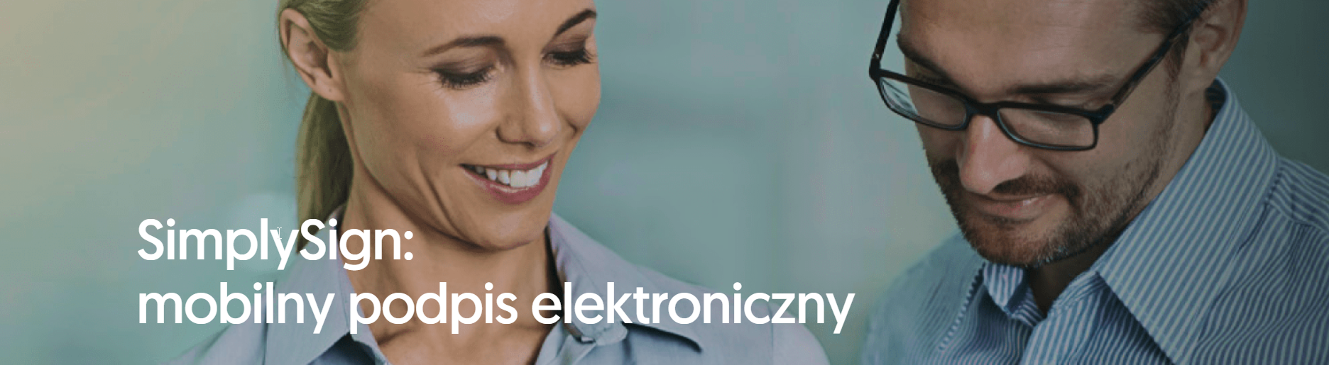 SimplySign to mobilny podpis elektroniczny, niewymagający fizycznego czytnika ani karty z certyfikatem. Umożliwia złożenie podpisu na urządzeniu mobilnym, takim jak smartfon czy tablet, a także na Twoim komputerze.